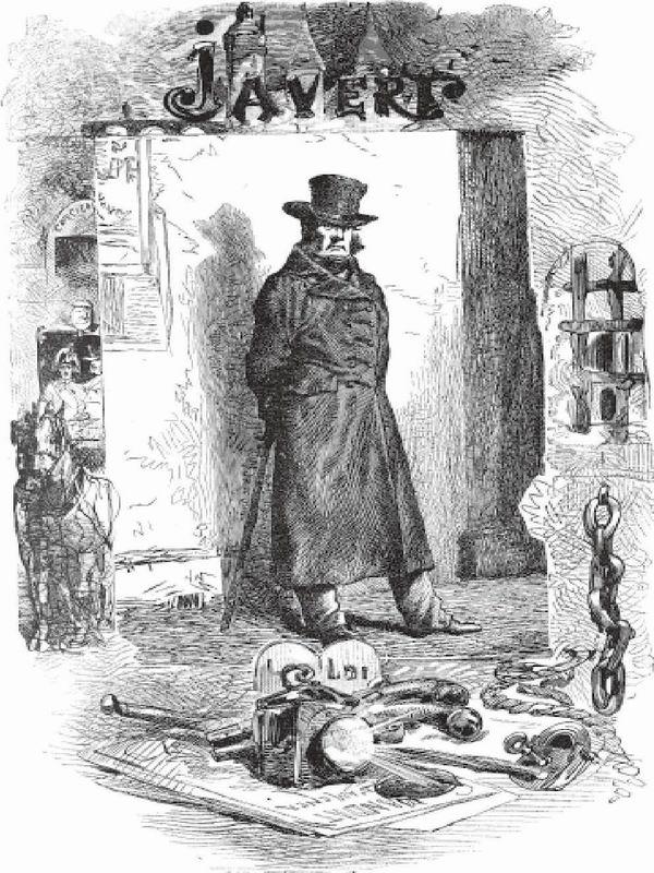 沙威全身无处不表明,他是躲在暗处窥探的人。以约瑟夫·德·梅斯特为代表的神秘学派,一定会说沙威是一种象征;要知道,当时那个学派用高深的天体演化论点缀所谓的极端报纸。别人看不见他遮在帽子下面的额头,看不见他埋在眉毛下面的眼睛,看不见缩入领巾里面的下巴,也看不见他插进长礼服里面的手杖。然而时机一到,他那瘦削的扁额头、阴森森的目光、咄咄逼人的下巴、粗大的双手和巨型的手杖,就像伏兵一样,都突然从这暗处冲出来。