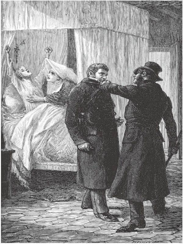 那天夜晚,阿拉斯的邮车从埃斯丹方向进城,在海滨蒙特伊一条街的拐角,挂到对面驶来的一辆套白马的双轮车。那马车的轮子被重重撞了一下,车上只坐着一个裹着斗篷的人,他根本不听邮差喊叫他停车,仍然快速驶去。