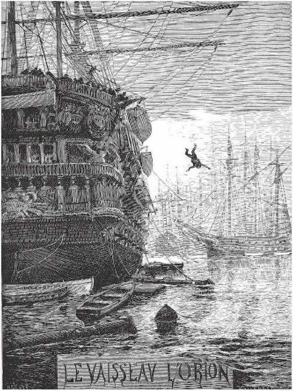 奥里翁号舰早就有了毛病。在以往航行期间,船底结了一层层厚厚的贝壳,结果影响航行,速度降低一半;去年把它拖出水面,除掉贝壳,然后重又下水。但是,那次除贝壳时损伤了船底的螺栓,行驶到巴利阿里群岛,船壳板承受不住而开裂,当时船体没有铁皮护板,于是进了水。不巧又遇到风暴,船首左舷和一扇舷窗破损,前桅的侧支杆也损坏,因此,奥里翁号驶回土伦港。