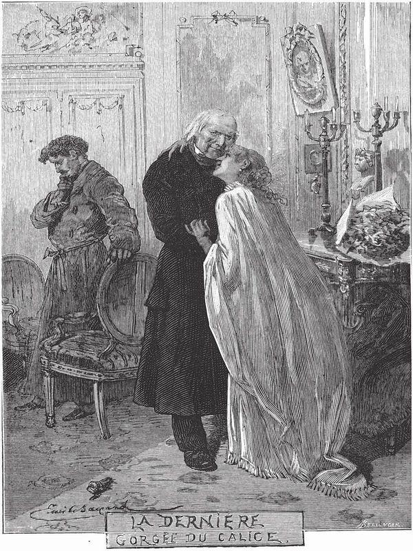 “首先,父亲,我要求您过来吻我。您在这儿怎么一言不发,干吗不帮我说话?是谁给我这样一个父亲?您瞧见了,我在这家里很不幸。我丈夫打我。好了,马上过来吻我吧。”